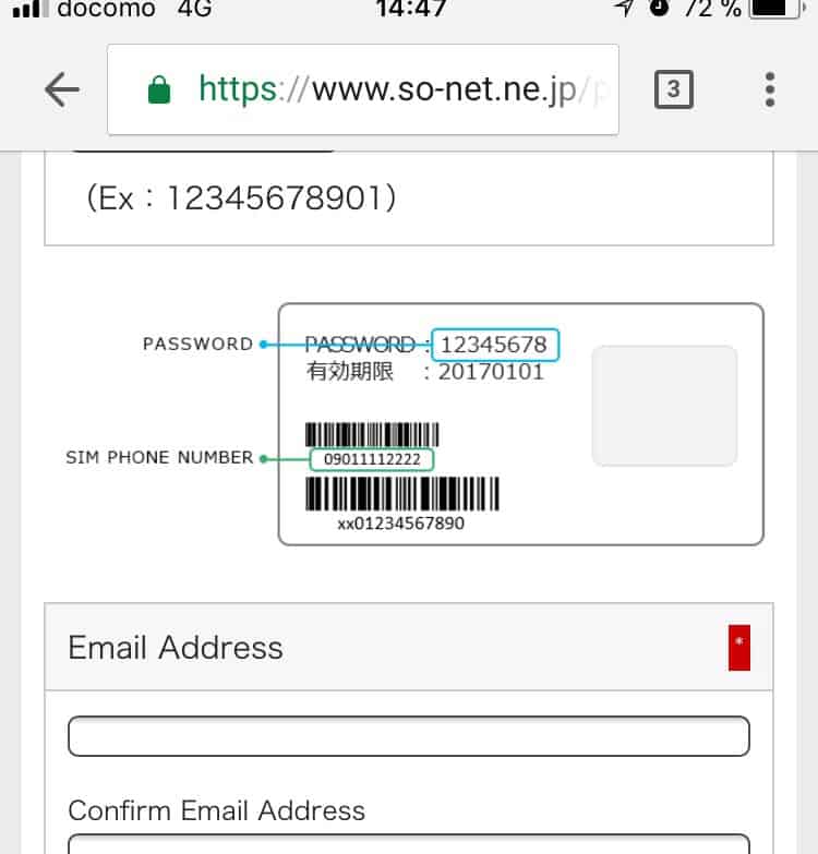 La procedura per la carta acquistata alla Bic Camera era abbastanza simile, ma bisognava inserire anche il numero di passaporto.