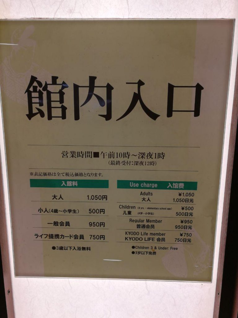 L’ingresso è piuttosto caro: 1050 yen. Sapone, shampoo, balsamo e detergenti per il viso sono inclusi.