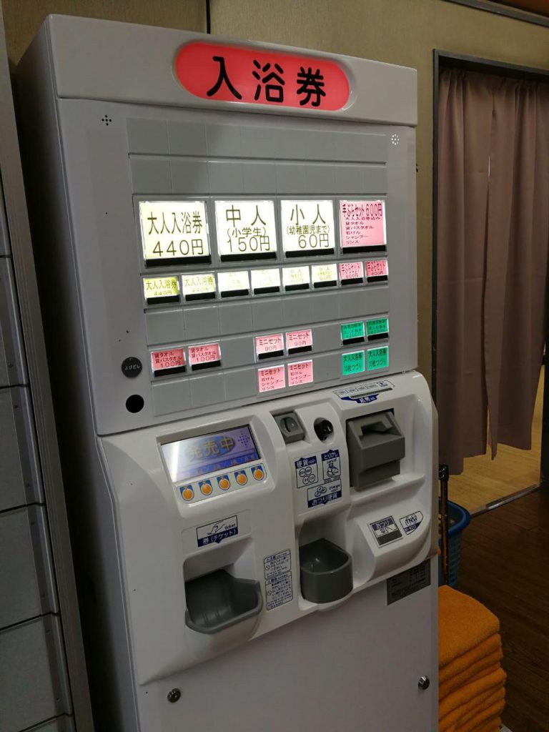 Per sapere come si svolge una sessione in un Onsen, è così.Poiché il nostro bagno è minuscolo e l’appartamento piuttosto freddo, abbiamo l’abitudine di andare ogni due giorni a lavarci in un onsen o in un sento.Finché lo faremo, ne testeremo uno nuovo ogni volta.Oggi è il turno di sento Suehiroyu che si trova accanto.Come al solito, le scarpe vengono tolte e messe in un piccolo armadietto (non c’è bisogno di spazio per l’armadietto).Una macchina è usata per comprare i biglietti.Tutto è in giapponese ma ci stiamo abituando, avete due tariffe principali: