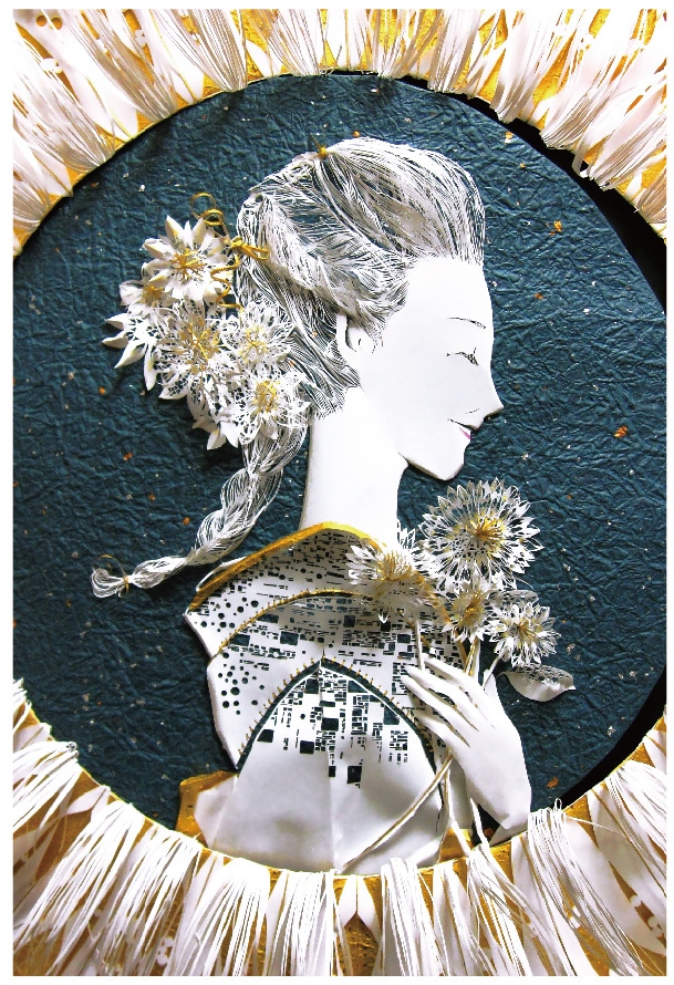 Souma ha fatto questo! Così mi sono affrettato a comprare il suo libro (立体切り絵作家SouMaの 初めてでもできる立体切り絵). Mostra come fare gioielli di carta e tagliare piume.