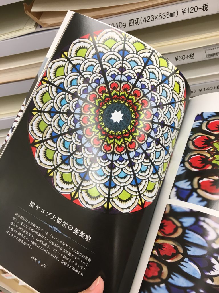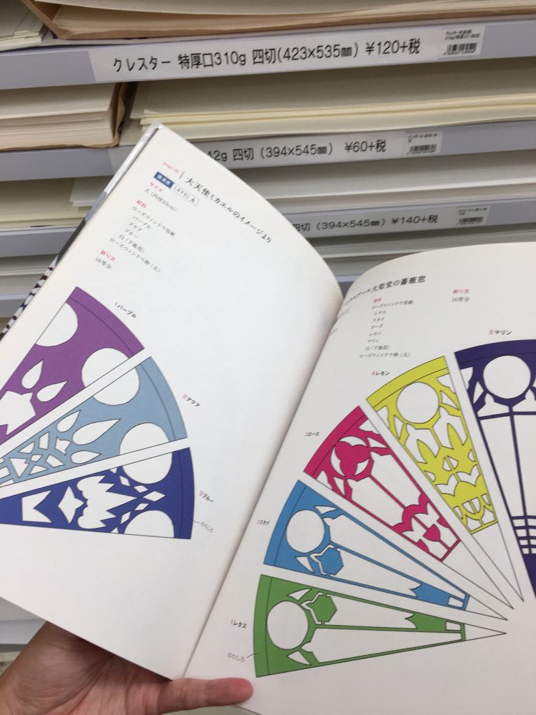 Il secondo libro che mi è rimasto impresso è quello di Nakayama Maki. Sembrano finestre di cattedrale, ma fatte di carta velina giapponese. Tagliate diversi modelli con carte di diversi colori e metteteli insieme per formare i “rosoni”.