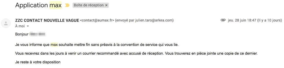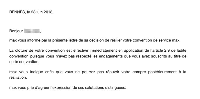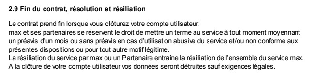 Infatti l’articolo 2.9 dice semplicemente che Max può scaricarci quando vuole, come vuole (un po’ come una rottura via SMS, per così dire). P/s: per leggere i veri SMS di rottura, consultez le compte Instagram Tejpartexto, c’est plus fun
