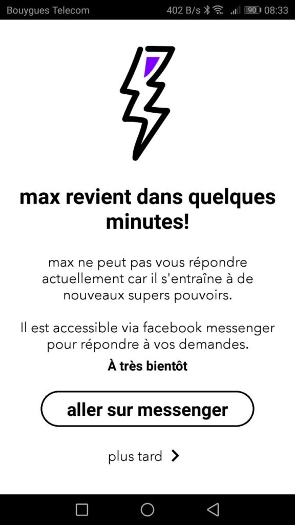 Quarta sorpresa: le piante dell’applicazione nel mezzo del processo. Quindi devo riavviare l’applicazione e ricominciare tutto da capo. #notgood. Sto cominciando a chiedermelo, l’app è chiaramente inaffidabile, sarebbe un peccato se un giorno mi sfuggisse dalle dita quando ne ho bisogno dall’altra parte del mondo. Soprattutto perché non c’è un backup: Max è solo un’applicazione mobile, nessun sito web di backup in caso…
